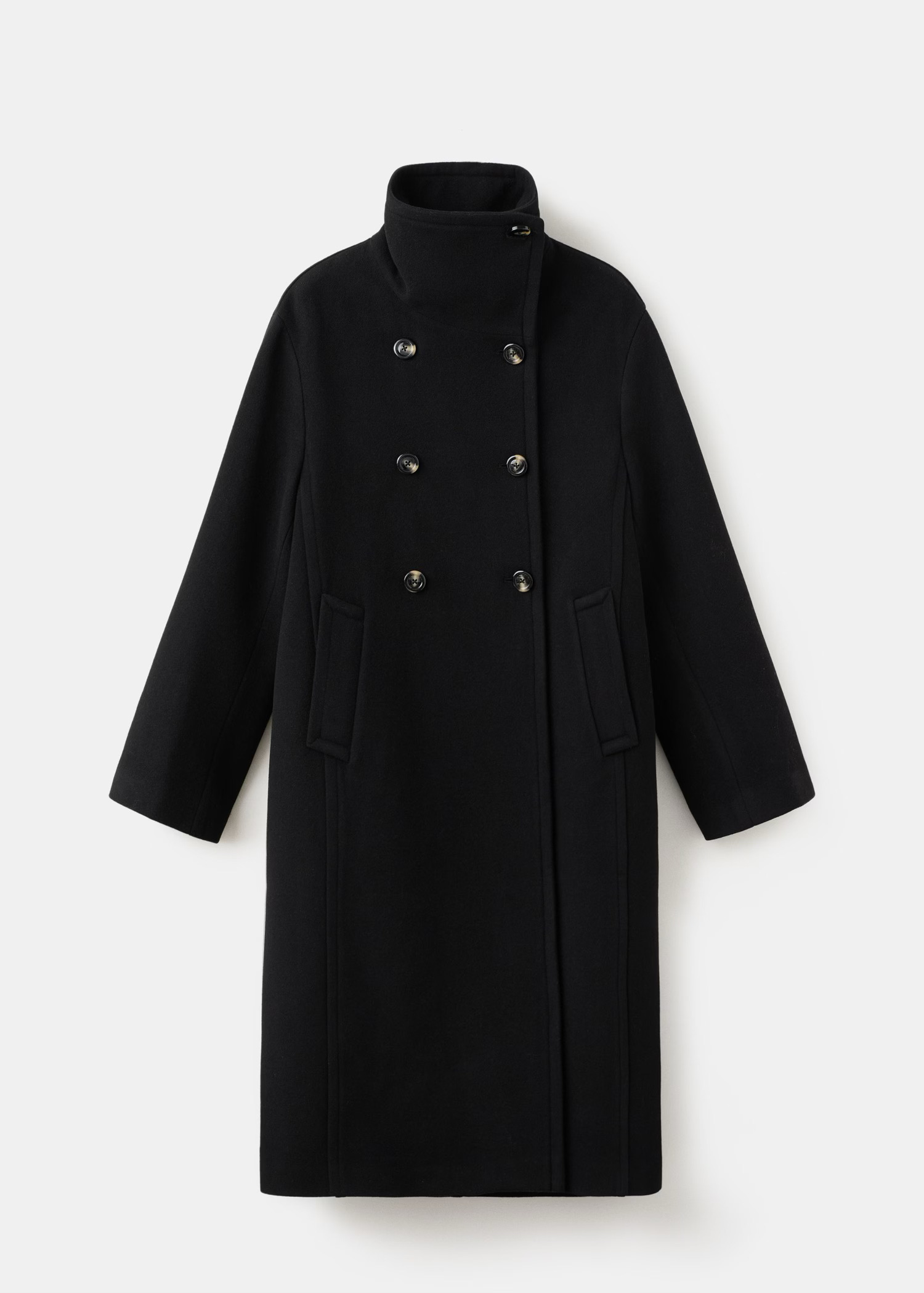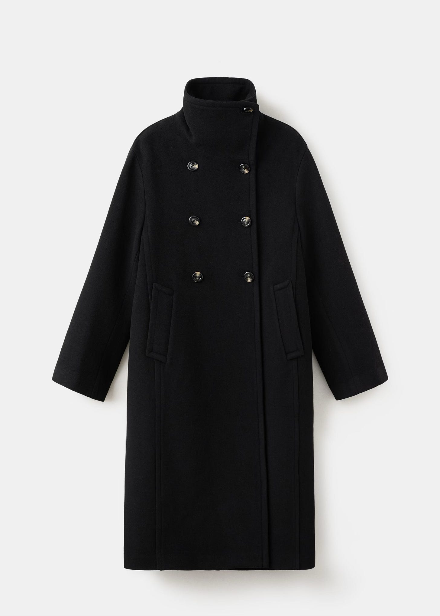 A great coat, probably inspired by Alaïa, with its stand-up collar and slightly rounded shape. It looks beautiful in both colours (there’s also an off-white version with contrasting buttons), and I would wear it with these boots.