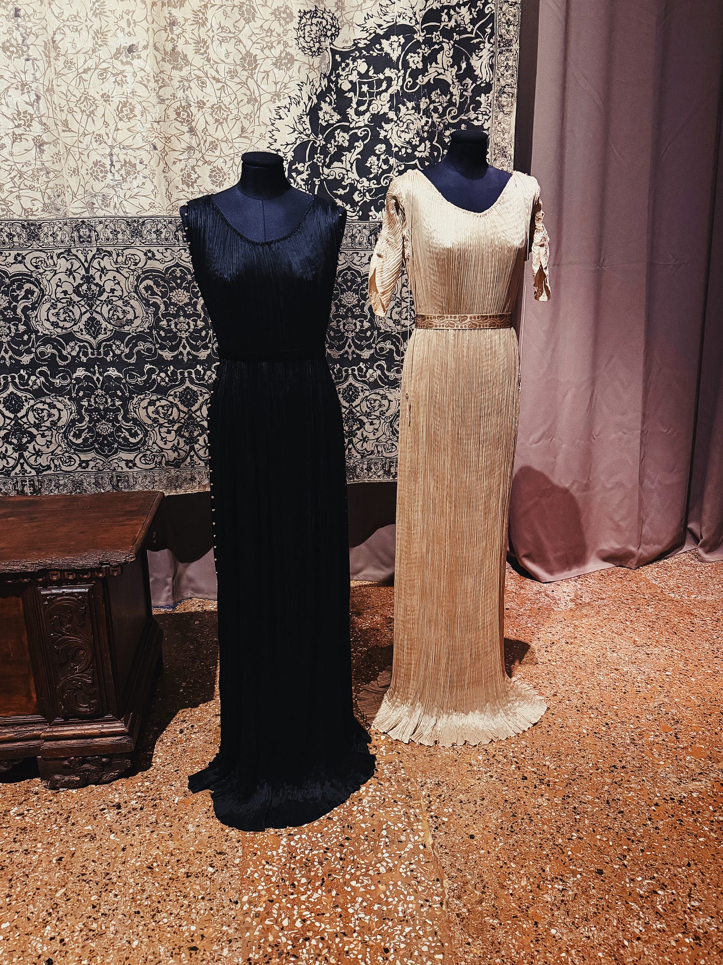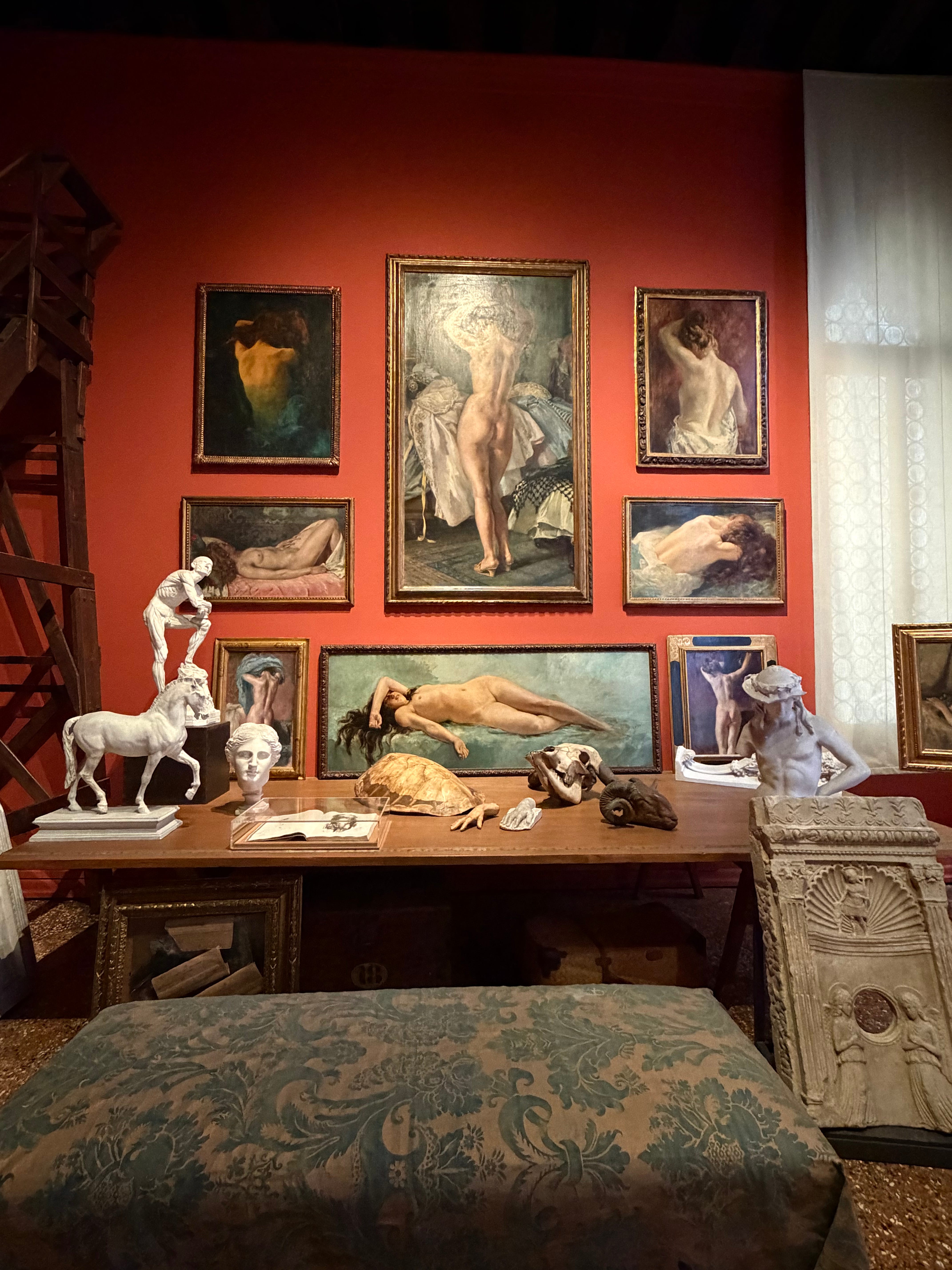 The next day I visit the Fortuny Museum — set in his former house where he also had his workshop, experimenting with dyes and fabrics, developing prints, drawing nudes of nameless models and countless portraits of his wife.