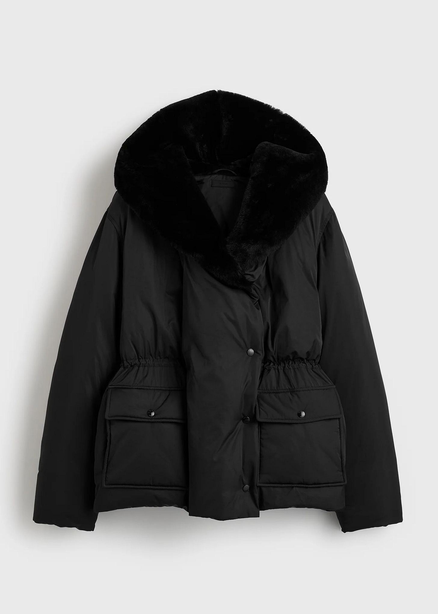 Another great puffer option for those who are into colour — the shade is a bit unusual, and I really like it. I love the shearling detail too; anything to escape a boring puffer. I also really like this one.